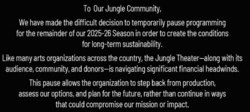 BREAKING NEWS: The Jungle Theater Announces Programming Pause